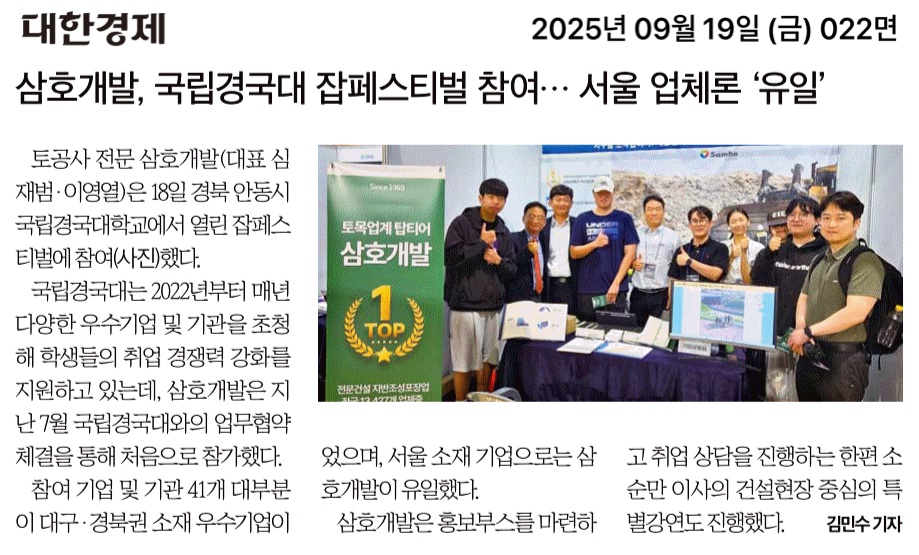 [대한경제 기사 보기 : “삼호개발, 국립경국대 잡페스티벌 참여”]