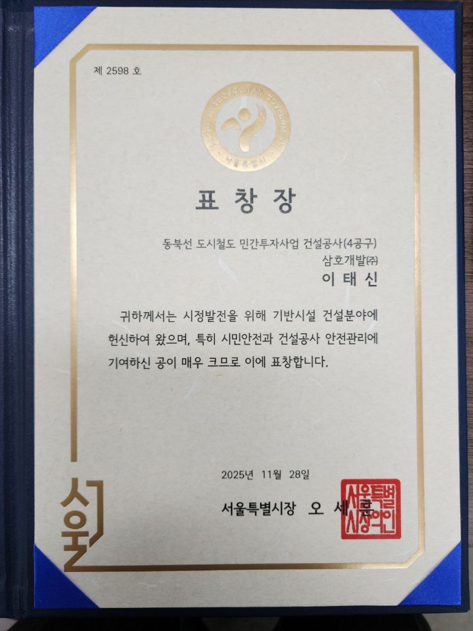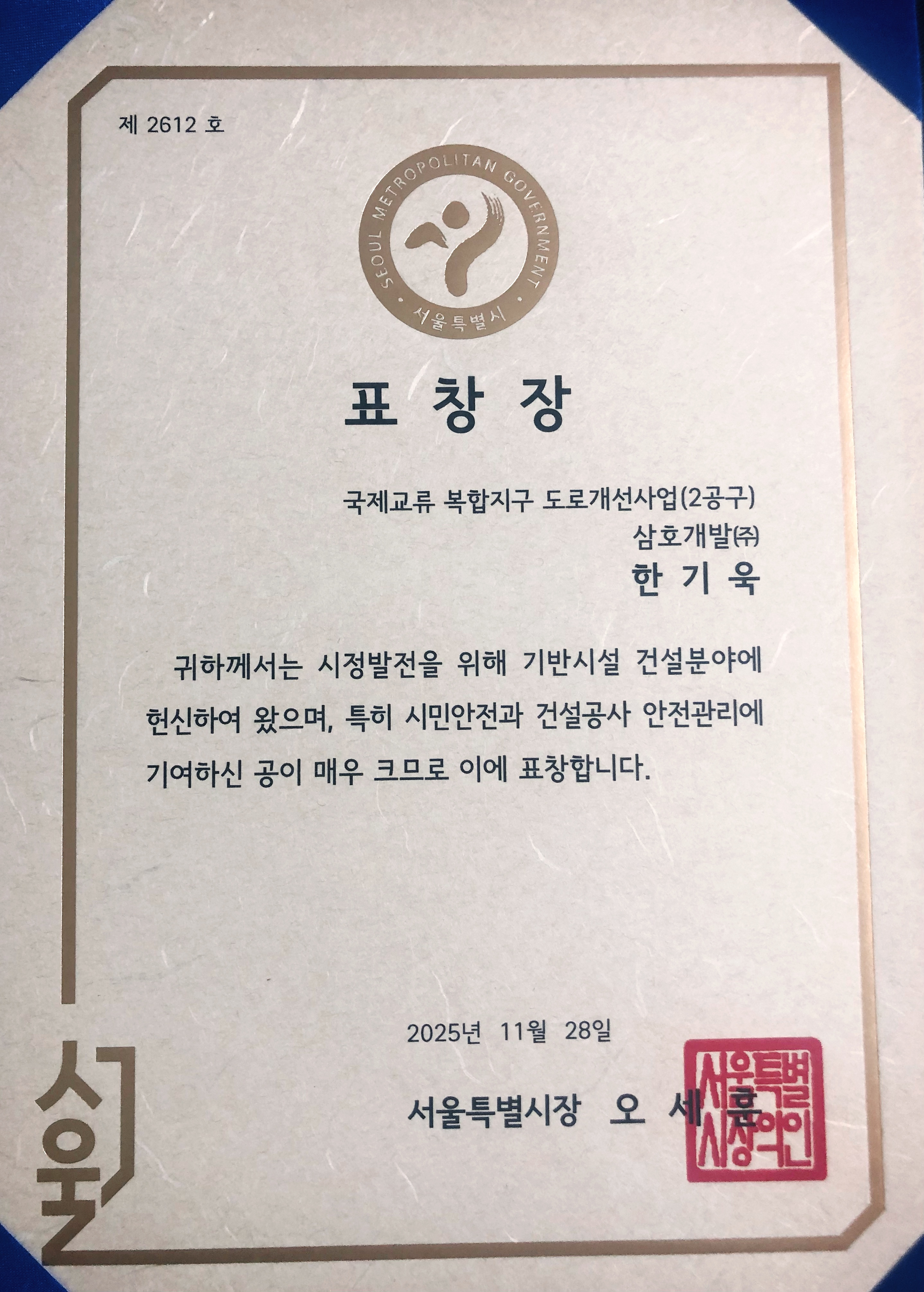 삼호개발이 서울특별시의 안전관리 · 안전지수 우수현장 부문에서 2개 현장이 동시 수상했습니다!