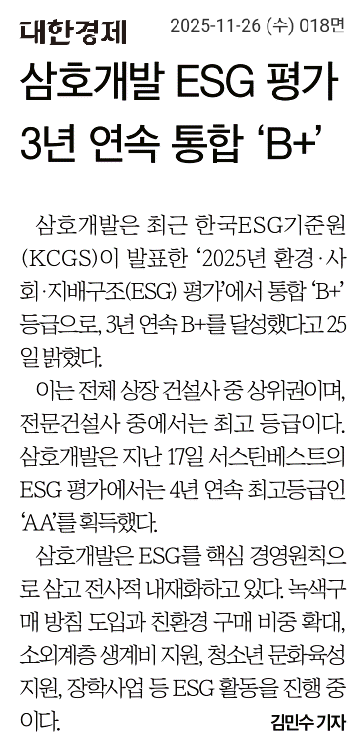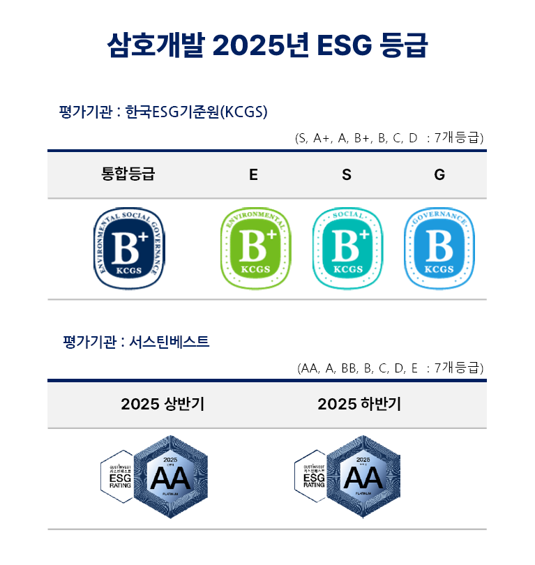 삼호개발의 2025년 ESG평가 등급이 공개되었습니다.